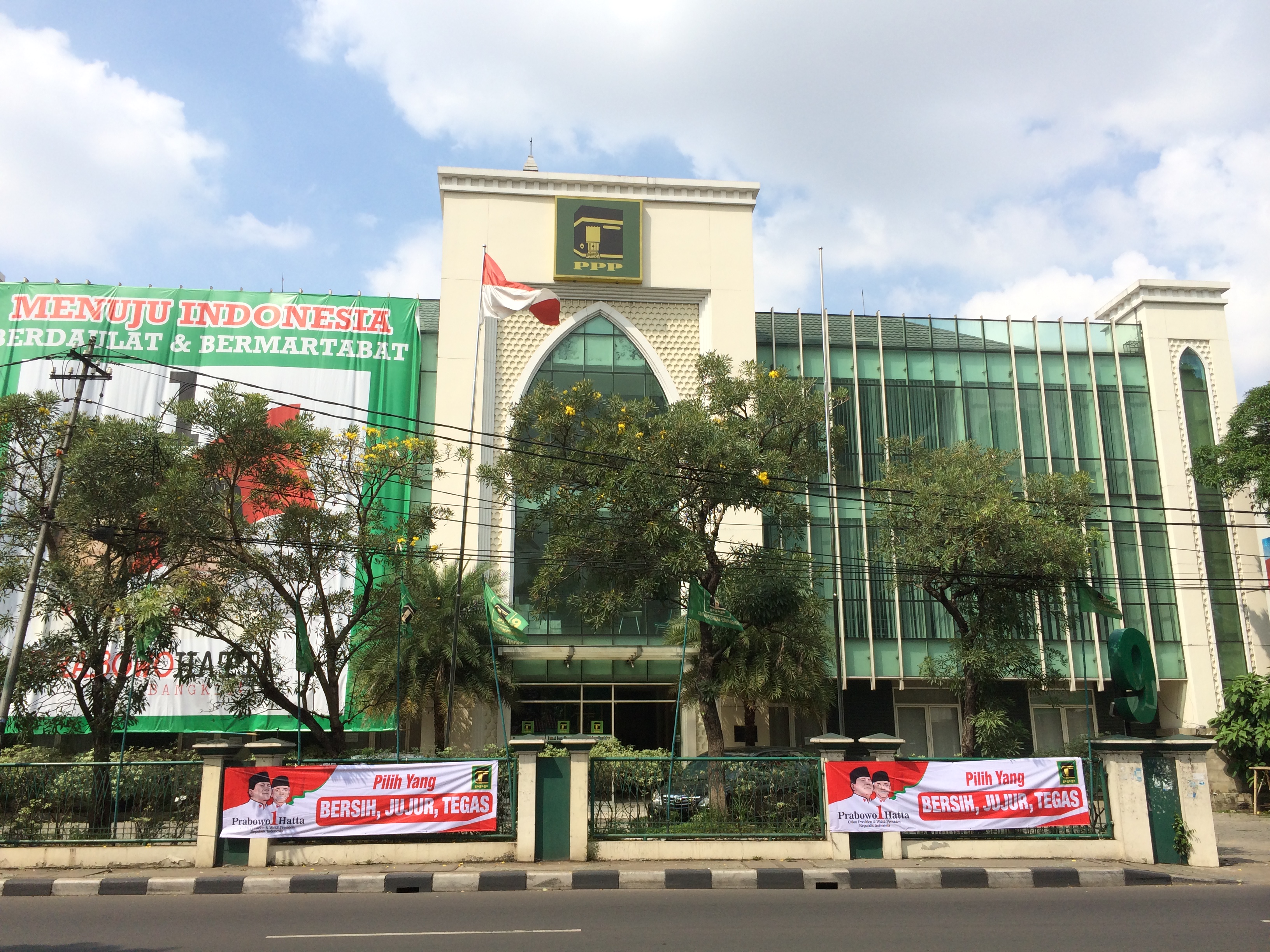 We begin with the headquarters of PPP, an Islamist party (note the Ka’aba on their logo) which supports Prabowo.