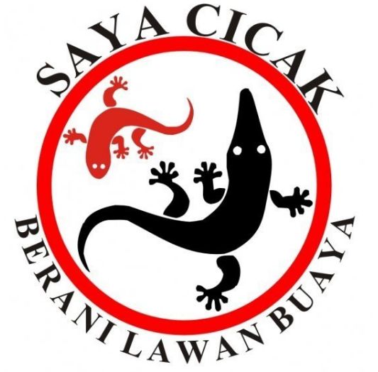 The gecko (cicak) here is next to the crocodile (buaya), and this reads “I am the gecko who bravely battles the crocodile.” A more evocative translation that resonates with English speakers might be “I’m the little guy who bravely fights against the machine.” It’s bad news for Jokowi’s presidency if he is now viewed as part of the machine.