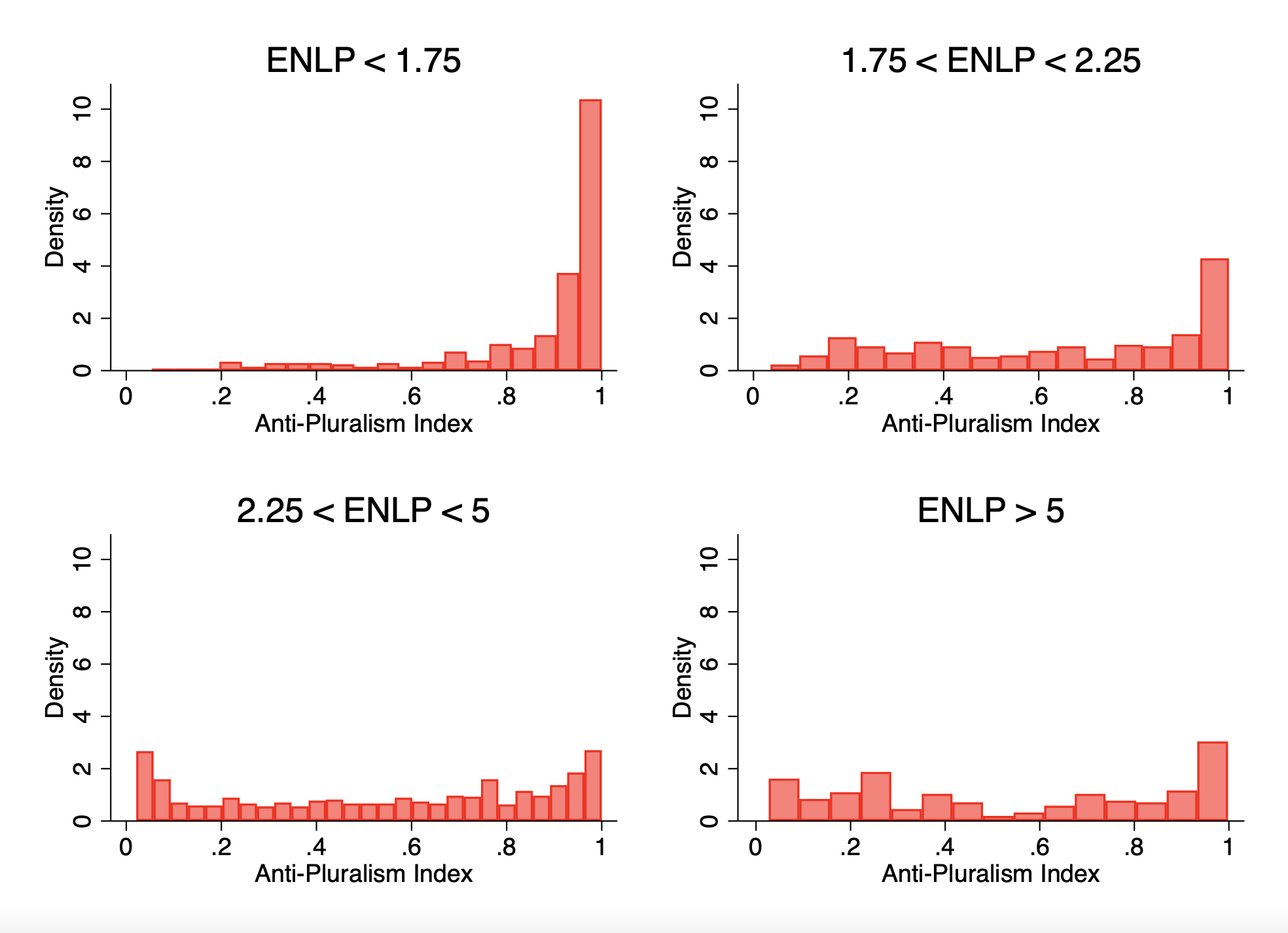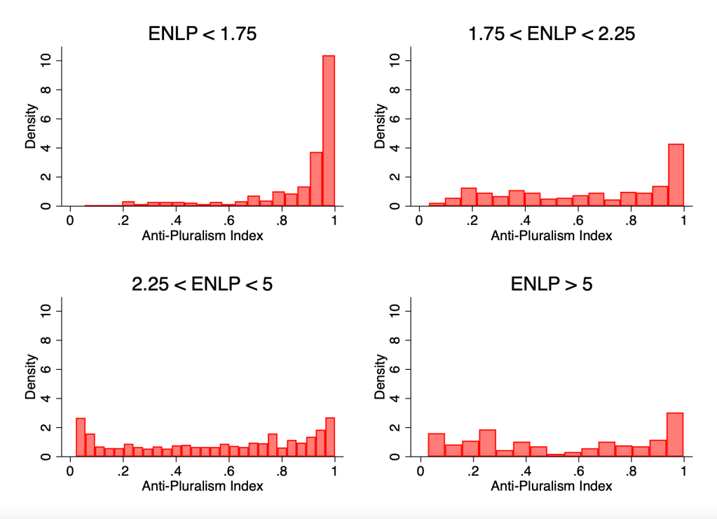 Now look at the middle plot. Amanah is a progressive or reformist Muslim party, and it contests primarily in constituencies with large bumiputera majorities. This makes sense because all Malays are Muslims by law. The DAP is dominant in constituencies with large non-bumiputera majorities; it is a social democratic party by heritage, but it has long been primarily Chinese in membership. PKR is the most interesting: it is a multiethnic party, and many of its members strive for a post-ethnic Malaysian politics and for social reform more generally. Pakatan Harapan runs PKR candidates in all sorts of constituencies, but it is most likely to run them in mixed constituencies with a relatively small bumiputera majority. These are the most multiethnic parts of Malaysia, and that is PKR’s sweet spot.