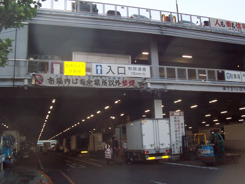 Jetlag woke me up at 3:30 AM this morning, which left me with a big chunk of time before my flight to Singapore at 11:00. Fortunately, I had a plan: head down to Tsukiji, the world's largest wholesale seafood market, to check out the action and snag a bite of super-fresh sushi. I would have preferred to have slept until 4:30 or so and gotten up in time for the first subway (left the nearest station at 5:04 AM), but since I was up far before that I decided to leave early and to walk.