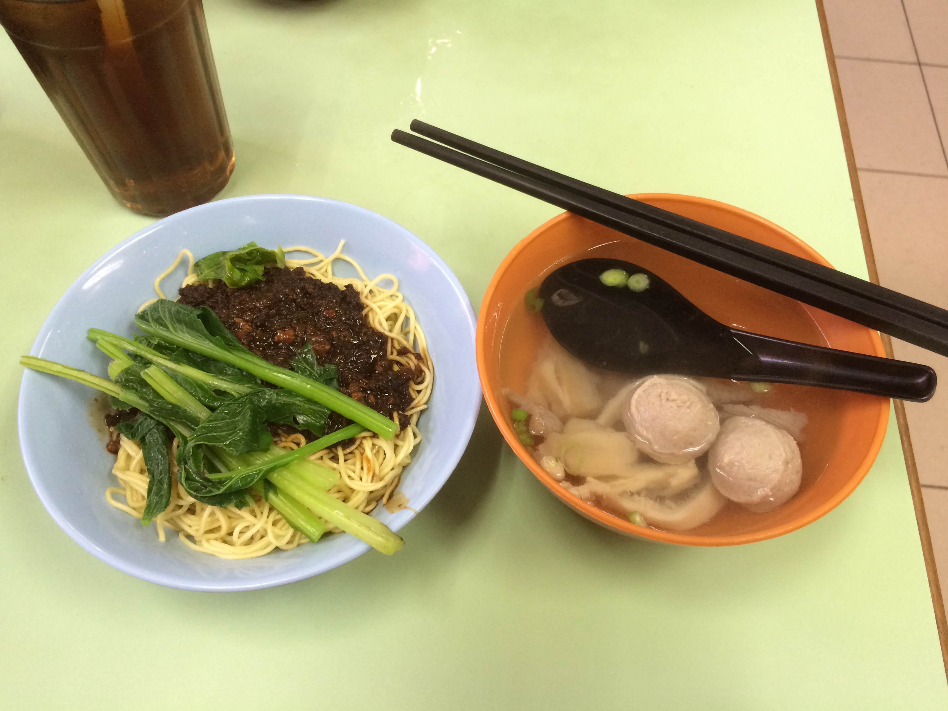 The signature preparation from Soong Kee is the “dry noodles” where the noodles are served separately, smothered in a rich minced pork sauce. The soup comes in its own dish. I ordered the mixture of balls and tripe.
