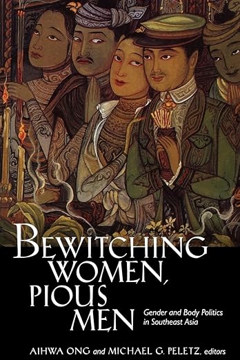 These kinds of intersections among various story lines are what make Saman such an interesting read. In reading together with the student, we came to the view that Saman represents a vision of the ideal man: he is pure, he is pious, he is noble in thought and in deed, unlike all of the other women in the book. It led us to think about assumptions about gender and sexuality in Southeast Asia: in Western academia, there is a view the traditionally, women were relatively more powerful and autonomous in Southeast Asia than they are in other parts of the world. In fact, this led us to pick off my shelf an old book that I bought for my first undergraduate class in the anthropology of Southeast Asia, Aihwa Ong and Michael Peletz‘s Bewitching Women, Pious Men, which is where I first encountered this view. From page 1 of the volume: